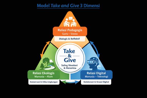 Prinsip take and give memiliki potensi transformatif yang besar dalam dunia pendidikan jika direkonstruksi secara kontekstual dan multidimensional. Dengan memperluas makna prinsip ini dari sekadar interaksi pedagogis di ruang kelas menuju dimensi ekologis dan digital, pendidikan dapat menjadi lebih relevan terhadap tantangan zaman, lebih bermakna bagi peserta didik, dan berakar kuat pada nilai-nilai kemanusiaan serta keberlanjutan.